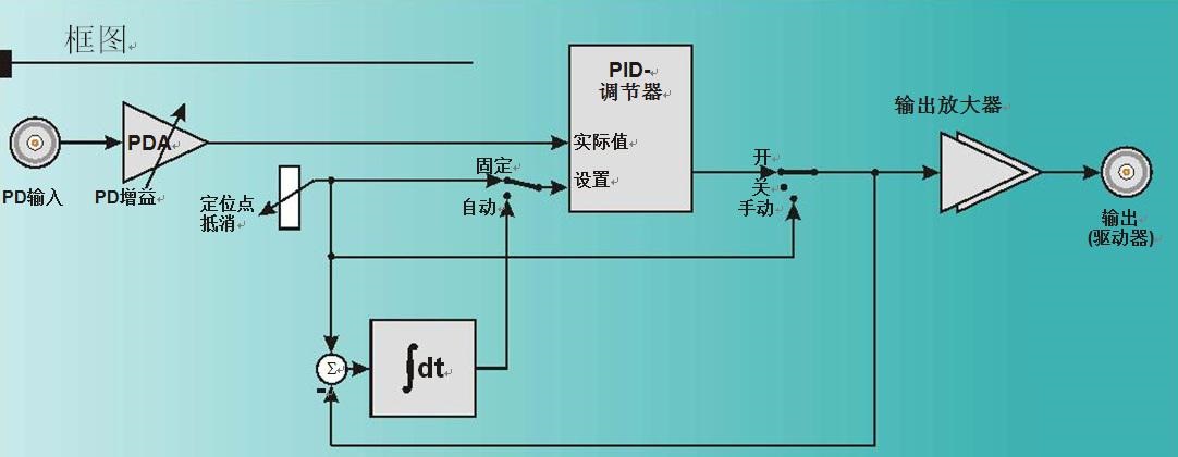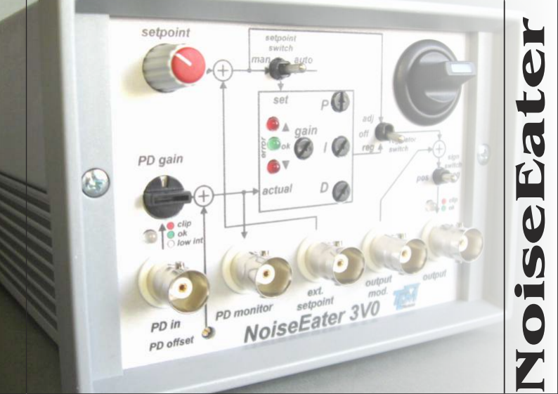 NoiseEater PDin的输入放大器是电压放大器和拥有阶梯式可选增幅,此外还有一个手动或自动点设置的PID调整器,以及一个匹配输出放大器的AOM或EOM驱动器。