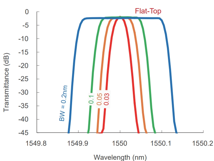 TFF系列: 中心波长波段可选:1060nm波段/1310nm波段/1550nm波段;3dB带宽固定:1nm,3nm可选