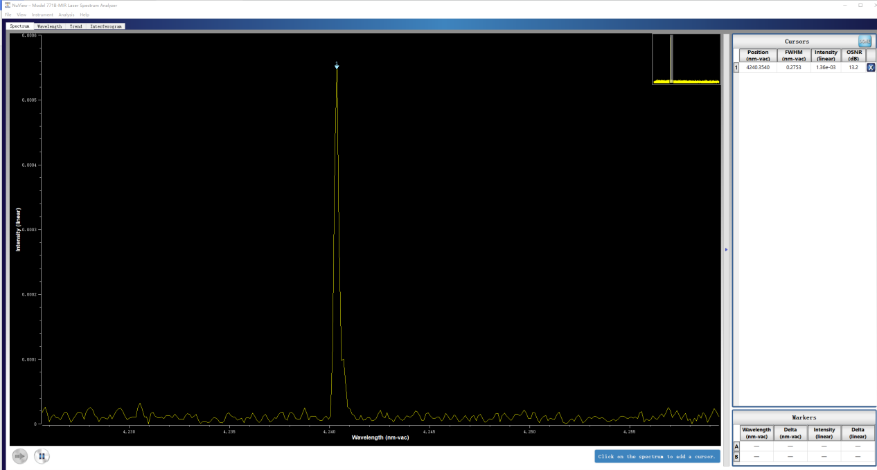 4.240um ICL-DFB激光器是上海304永利集团开发的可调谐连续光激光器,窄线宽,高功率,低功耗,能够满足气体传感测试,尤其对碳氢化合物和其他相关气体的测试具有重要意义。并且台式ICL-DFB激光器模块内部集成了驱动,温控模块,还可以用软件控制调谐激光器的温度和工作电流,能够让激光器稳定工作,保持测量数值的准确性。在激光器模块内部还加入了FPGA(可选,需收费),方便对测量气体的浓度的处理