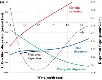 Nufern 公司推出的单模(SM2000D)光纤和保偏(PM2000D)光纤针对 2um 波段色散补偿应用设计,其纤芯玻璃组份设计(材料色散的主要因素)以及波导设计(波导色散的主要因素)都经过了优化,确保该光纤在 2um 波长范围内表现为负色散。 SM2000D 和 PM2000D 光纤的纤芯直径大约 2um,数值孔径约为 0.4,在 2um 波长的模场直径 (MFD)为 4um。其 125um 包层直径使得该光纤和用于预放大器级的有源和无源光纤有很好的兼容性,同事容易使用传统的切割和熔接设备进行处理。这些色散优化的光纤尤其适用于 2um 波段的脉冲光纤激光器和光纤放大器。