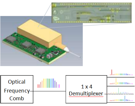Pilot Photonics公司的iCLA集成了一个单片集成梳状激光器和解复用器,提供四个或更多同时产生的相干,在分离纤维上的相匹配输出,更换多达4个集成可调谐激光组件(iTLAs). 它被设计用于从单个激光模块驱动单个光纤上的多个400G/800G,相干光引擎。 提供了调整四个输出波长分离的能力, 在保持相干和相位匹配特性的同时,降低所需的DSP复杂度。 该设备在一个软件控制的评估平台上提供所有所需的电流和温度控制。设置梳状管通道间距的射频信号可以在内部提供,也可以在外部提供。
