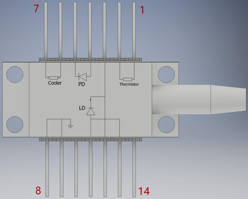 中心波长:1240nm;光功率:30mW;线宽:5MHz;引脚定义:PumpB型;光纤及连接器:PM980 Fiber+ FC/APC;内置隔离器