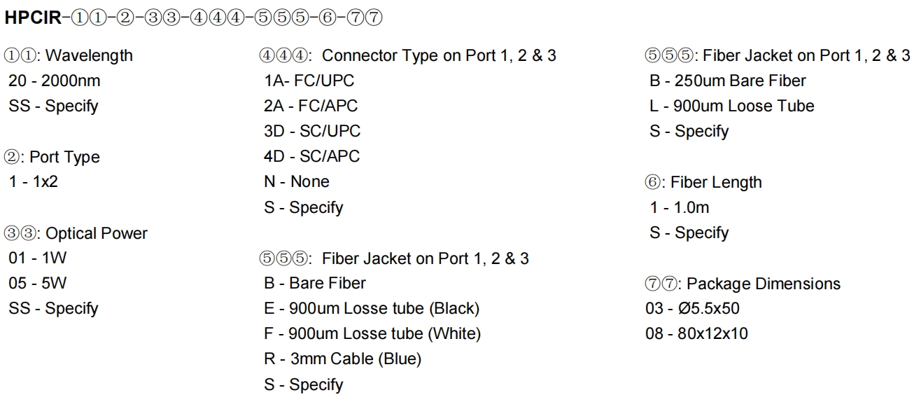 2000nm 三端口偏振不敏感环形器 (High Power Polarization Insensitive Optical Circulator ),光只能沿一个方向传播。信号若从端口1输入,则从端口2输出;而信号从端口2输入,则将从端口3输出,其输出损耗都很小。光从端口2输入时,从端口1输出时损耗很大,同样光从端口3输入时,从端口1,2中输出时损耗也很大。光学环行器是不可逆光学器件。