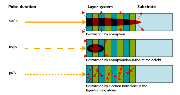 • CW – ns → 由于涂层材料内的吸收而导致的热破坏。