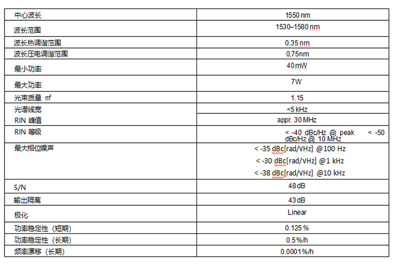 低噪声水平的铒单频窄带光纤激光器。通过大范围主动温度稳定实现激光参数的稳定性。该激光器尺寸小巧,可装入标准 19 英寸机架或采用 OEM 设计。