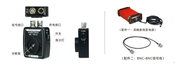 PDJAF8J5 | A80153440 | 800-1700nm铟镓砷放大光电探测器,感光尺寸Φ0.5mm,固定增益10kV/A,带宽范围DC~150MHz,快速弱光测量 |