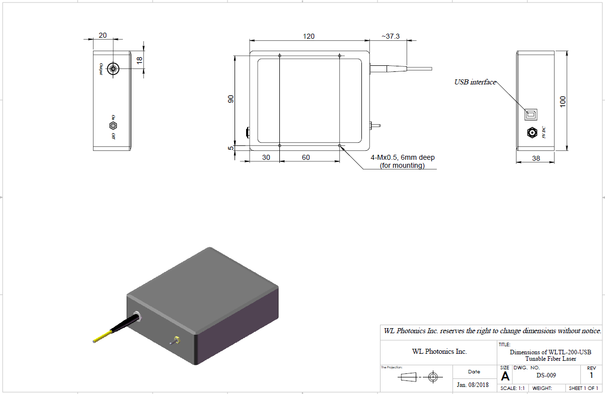 ,带 1m 长、3.0mm 松套管、尾纤类型PM1300,连接器FC/APC ,USB控制接口。