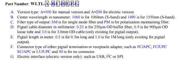 示例1:WLTL-100-1060-SM-3.0/1.0-FC/APC