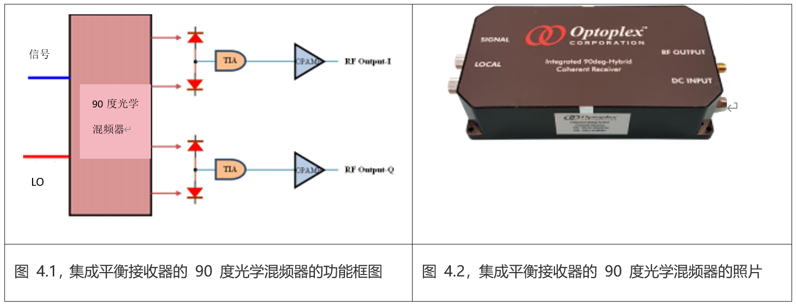 90 度光学混频器集成接收器的功能框图和产品照片如下图 4.1 和图 4.2 所示。