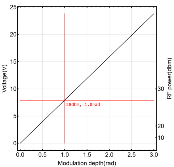 低驱动电压:微波驱动功率低,1rad所需微波功率典型值约23~27dBm