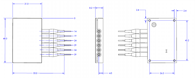 图 3.3, 具有单端 PD 输出的 90 度混合器的机械图纸