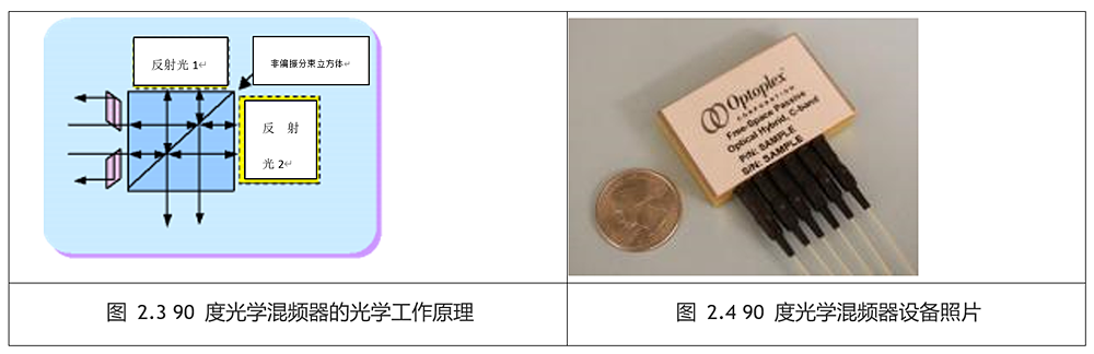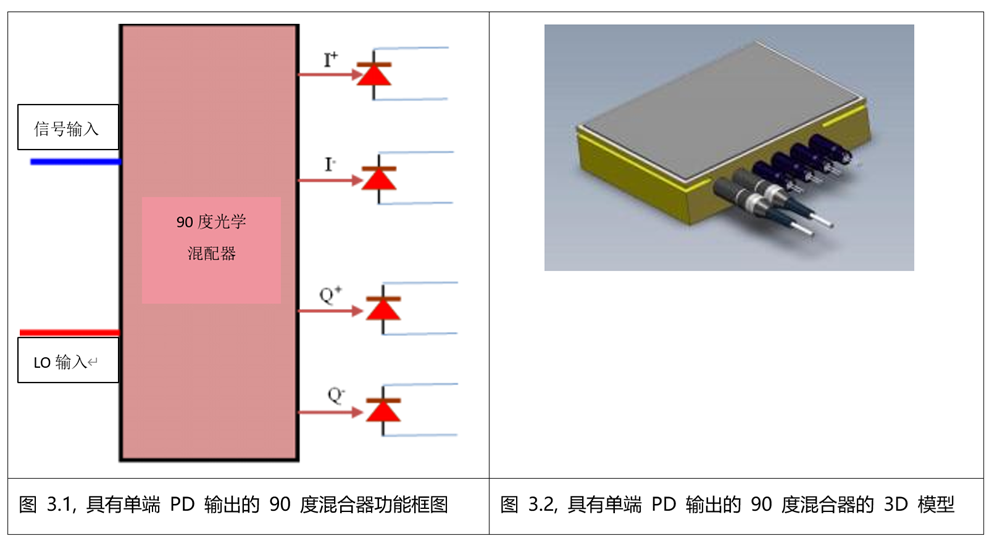 90度光学混频器的光学性能与前面章节描述的相同,只是输出准直器被单端光电探测器取代。