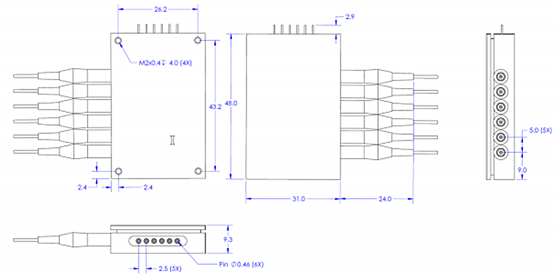 5 | 90 度光学混合器,L 波段,输入端口(信号和低频)采用 PMF,所有输出端口采用 SMF,I/Q 相位可调 | HB-L2AFAS512 | L-Band | PMF | PMF | SMF |