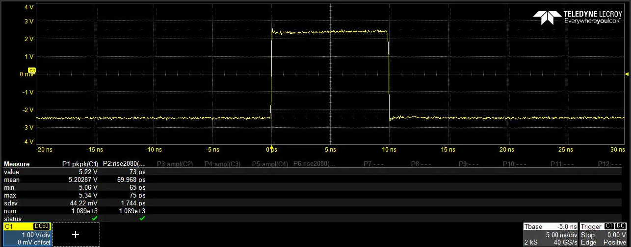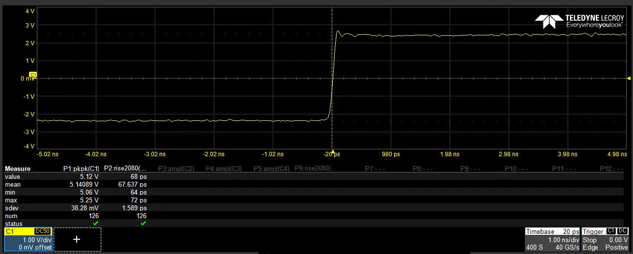 信号输出电压可在 ±5V 范围内调节,峰峰值z高可达 5V,边沿速率为 70ps。