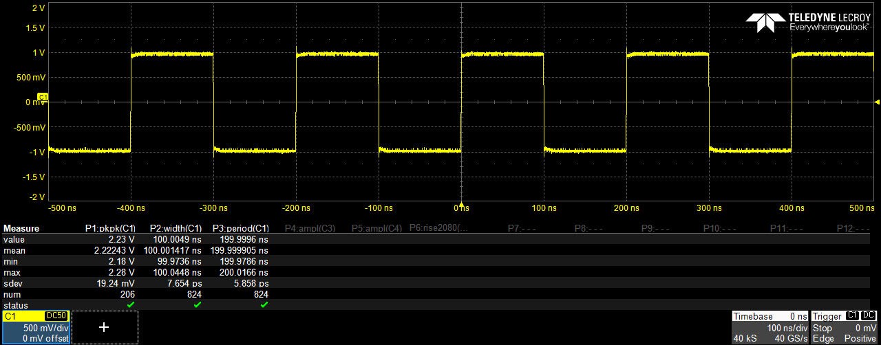 ● 脉冲幅度 高达 5Vpp(50 欧姆负载),带 ±2.5V 硬件偏置