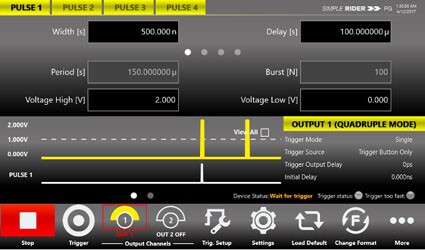 Active Technologies Pulse Rider PG-1000 系列脉冲发生器通过图形界面和触摸屏显示,可轻松创建不同脉冲宽度、重复率和振幅的脉冲。