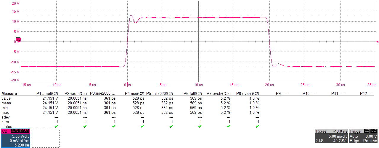 信号输出电压可调至50伏峰峰值,窗口范围为±25伏,边缘速率为400 ps。