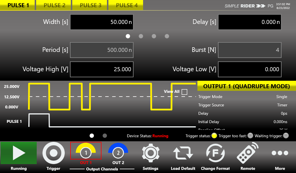 Active Technologies Pulse Rider PG-1500系列脉冲发生器通过图形界面和触摸屏显示,轻松创建具有不同脉冲宽度、重复率和幅度的脉冲。