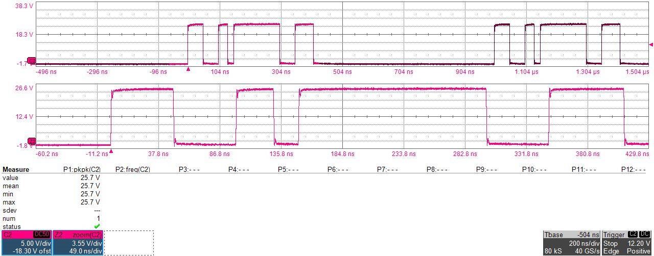 其创新的硬件架构提供了生成多个脉冲序列的可能性,例如双脉冲、三脉冲或四脉冲,且每个脉冲序列的时序参数完全独立。Pulse Rider脉冲发生器的Max. 重复率为400 MHz,Min. 脉冲宽度为1 ns @ 50V。