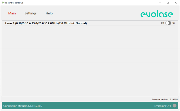 主面板右侧的“状态值”部分显示激光二极管相应参数的当前测量值。当控制窗口折叠时,状态栏中会显示相同的信息。斜线符号“/”前的数字显示在控制窗口中设置的值。斜线符号“/”后的数字显示从驱动器测得的实际值。电源状态切换开关也在状态栏的右侧重复。这允许用户在主窗口折叠时监控激光二极管的相应参数并打开和关闭其辐射。