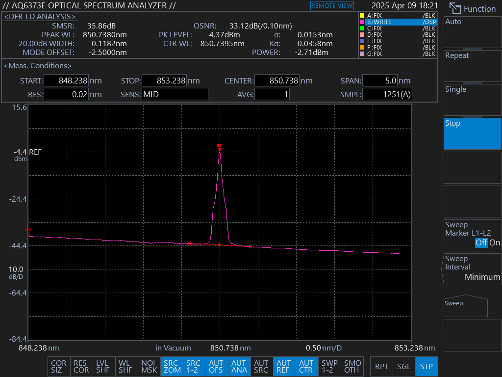 PN#TLS-850-50-PA(850nm,50mW,FC/APC,PM780)