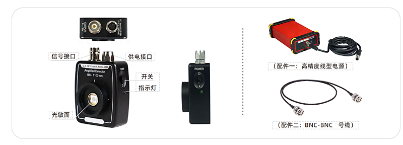 ● 硅探测器,感光范围覆盖190nm~1100nm,常用于紫