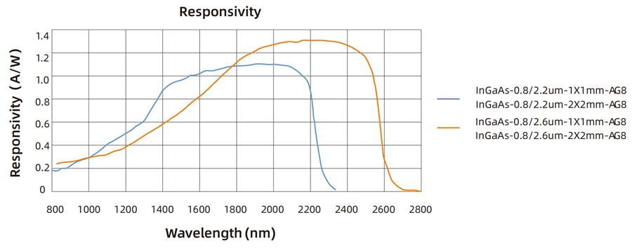 InGaAs-0.8/2.6um-1x1mm-AG8 | 800~2600nm | 2mm x 2mm | 延伸覆盖2.6um | |
