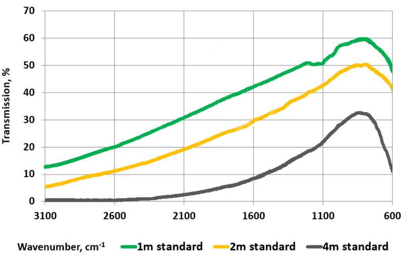 不同长度多晶光纤的透射光谱(标准质量等级)