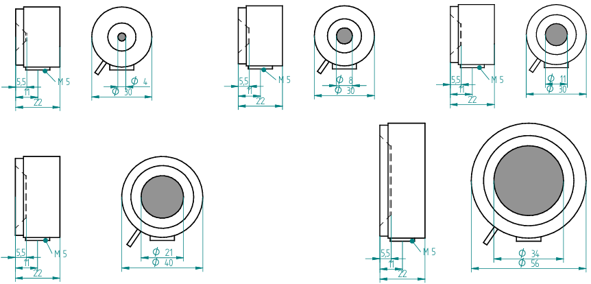 外形尺寸(直径・长度) | 30 mm X 22 mm | 30 mm X 22 mm | 30 mm X 22 mm | 40 mm X 22 mm | 56 mm X 22 mm |