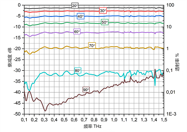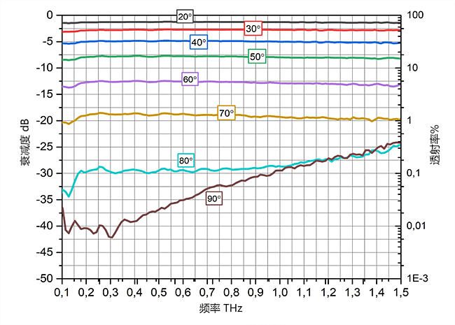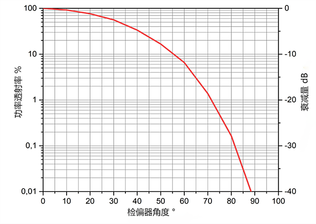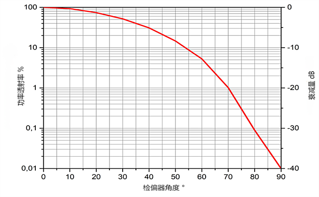 太赫兹可调精密衰减器随附校准曲线,用于确定检偏器相对于输入偏振器处于特定旋转角度时的消光量。
