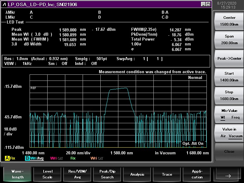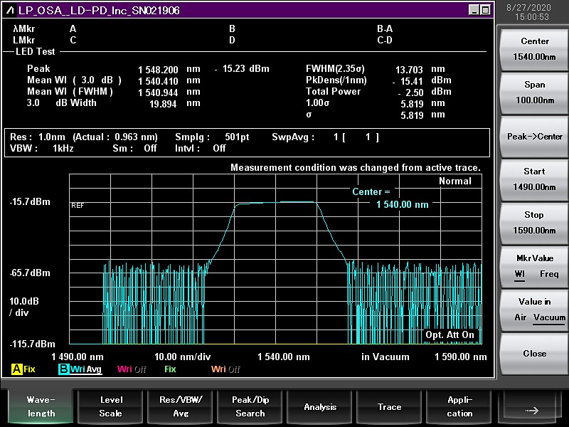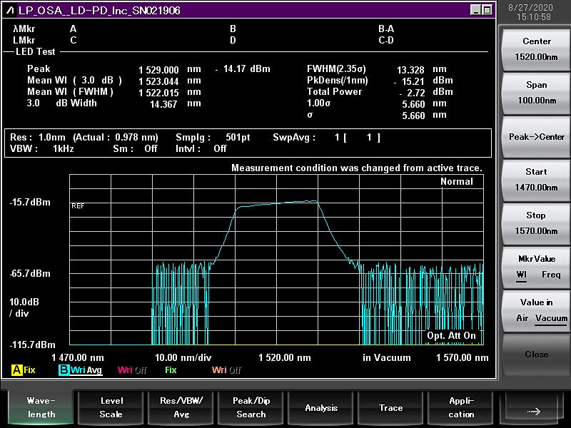 中心波长(nm) | nm | 1520/1540/1560/1580 | 其他波长可以定制 |