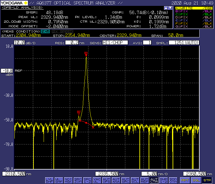 图2:光谱仪上显示的DFB激光器 2330nm
