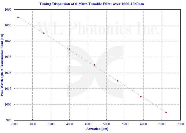 示例:X波段0.25nm滤波器的典型透射光谱和调谐色散