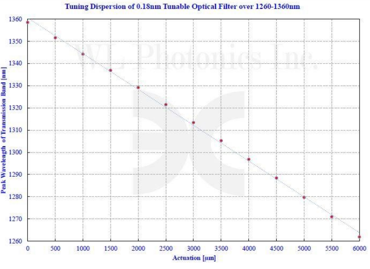 示例:O波段0.18nm滤波器的典型透射光谱和调谐色散