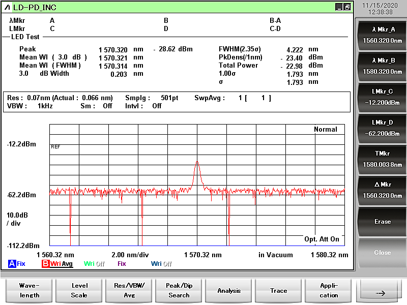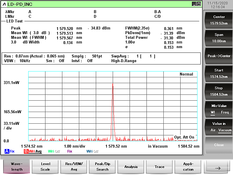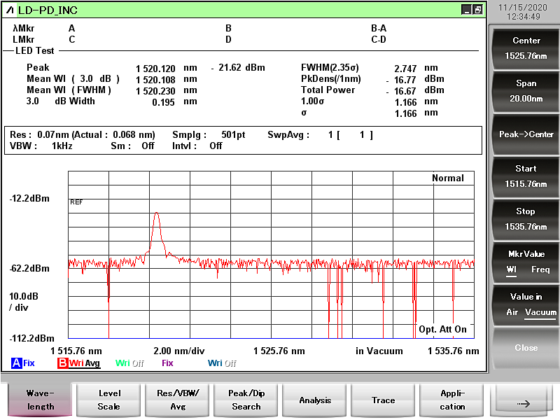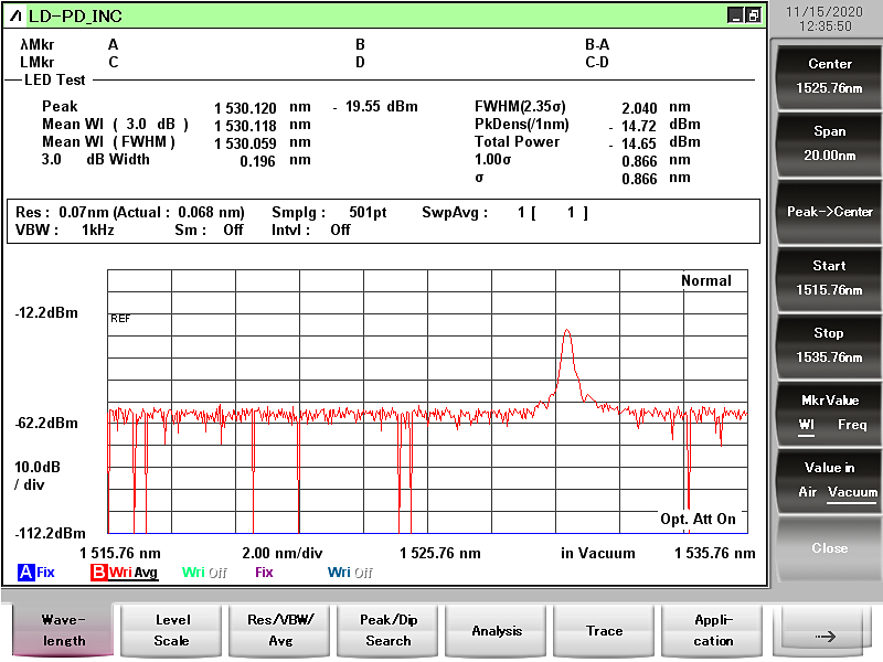 1. 调节旋钮得到的测试光谱图1520nm-1580nm