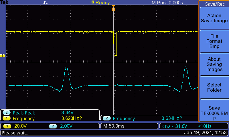 打开激光器,调节电流和温度,在示波器上看NO分子的二次谐波吸收谱线