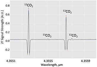 稳定的同位素分析(例如13C / 12C的比率)为从温室气体归因到植物微生物相互作用的一系列应用提供了更多信息。由于来自不同同位素的明确的吸收特征,激光光谱法是进行同位素分析的一种好的方法。但是,通常需要减小压力(P〜0.01至0.1 Atm),以通过“缩小”宽度来有效地分离特征。HC-5-MIR设计为在这样的压力下运行,并且由于样品量较小,因此可以使用相对较小的泵进行操作。