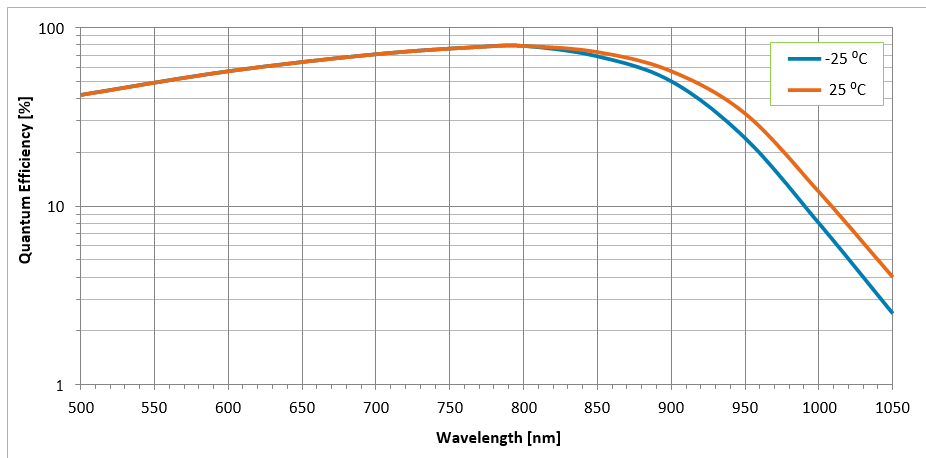 图2–典型量子效率与波长的关系,作为外壳温度的函数