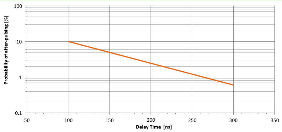 后脉冲随偏压的增大而增大。如果需要减少后脉冲,建议将Vr Vbr保持在低水平,使用具有长延迟线的主动淬火电路,或具有长RLC常数的被动淬火电路。杂散电容也必须最小化。在某些情况下,可以对信号进行电子选通。如果在特定应用中后脉冲是一个严重的并发症,可以考虑在Vbr以下使用良好的放大器进行操作。