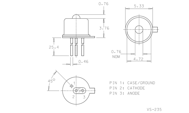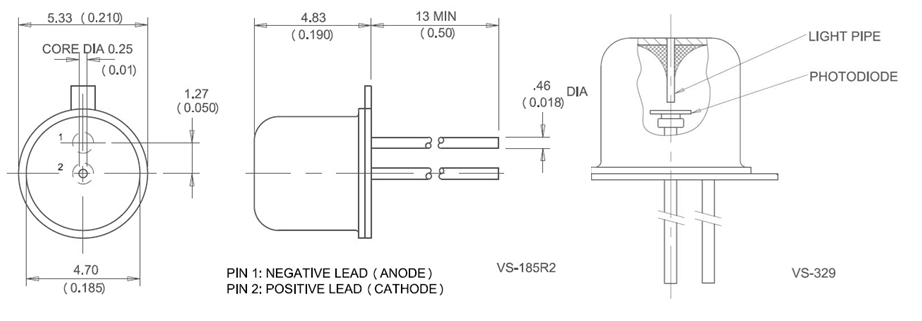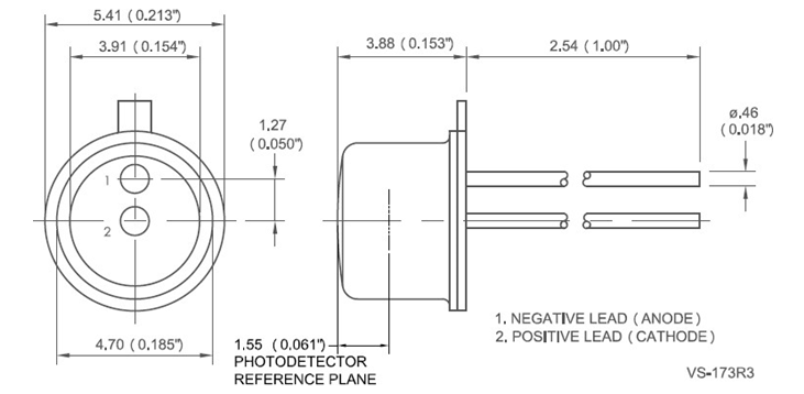 器件的响应度与最高约800 MHz的调制频率无关。探测器芯片采用经过修改的TO-18封装,密封在平玻璃窗后面。