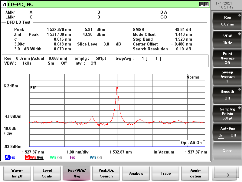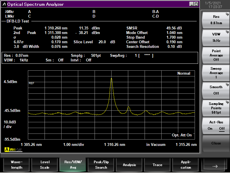 1310nmDFB光谱图