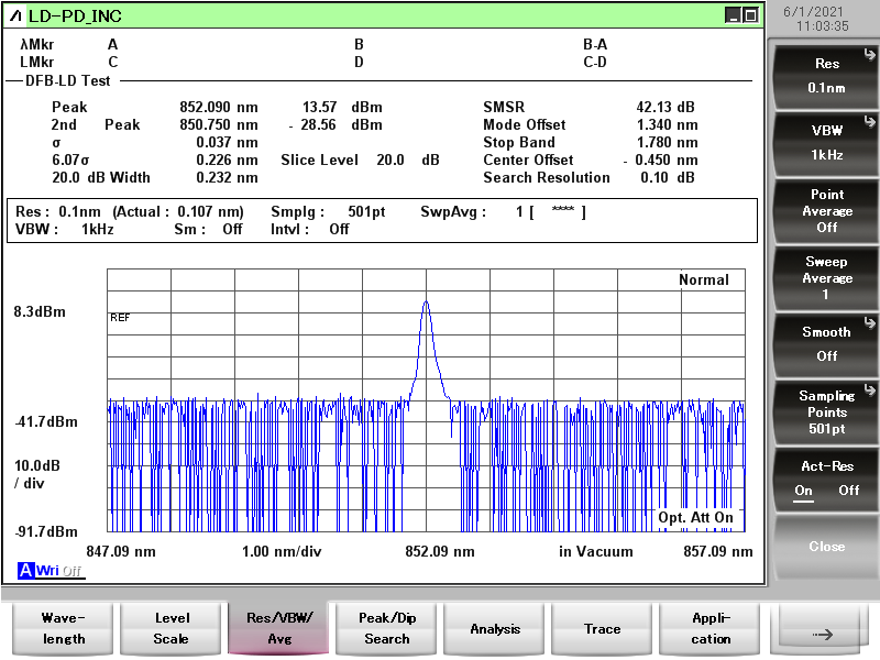 852nmDFB光谱图