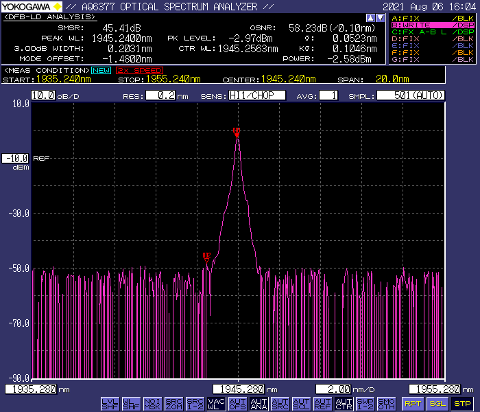 1945nmDFB光谱图 功率稳定性测试