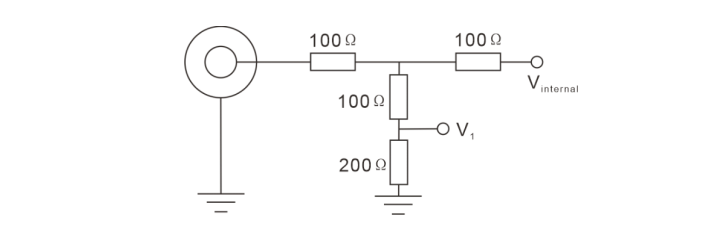 仪器后面板信号输入端INPUT用于接收外部输入,不开启内部偏置信号时,等效电路如下图所示: