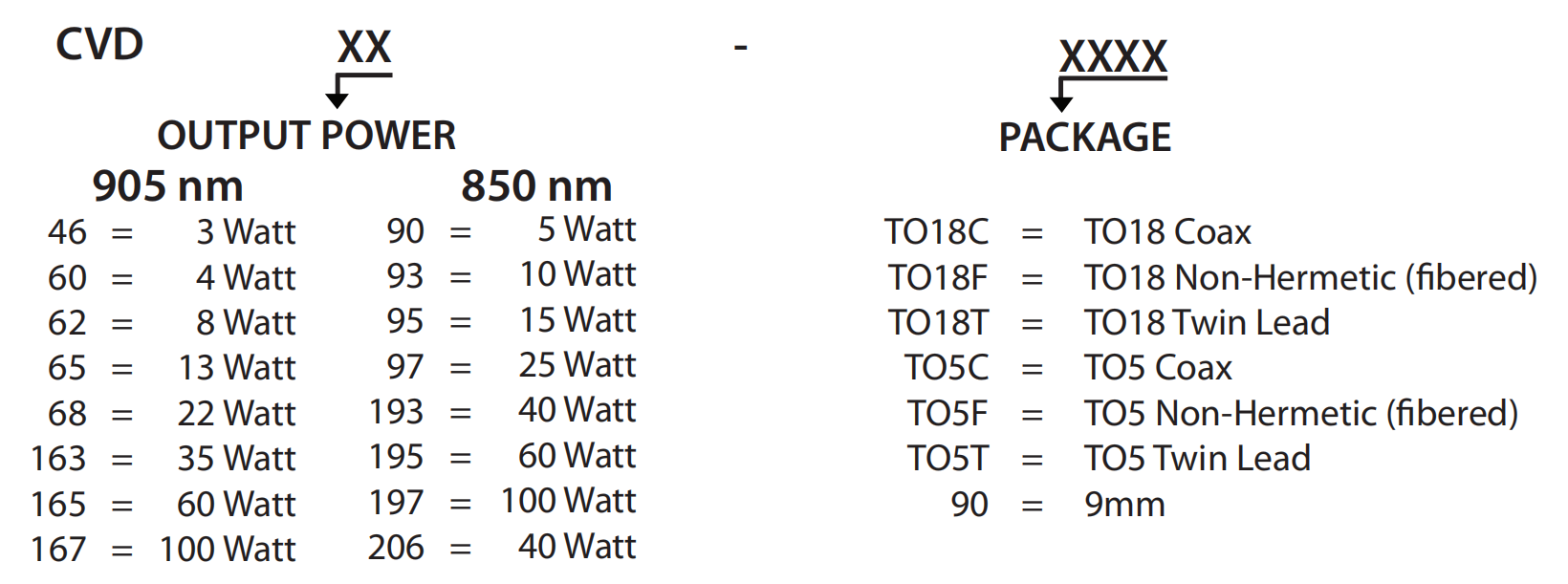 有关完整的详细信息,请参考您的产品购买协议,或者咨询您的OSI激光二极管销售代表。