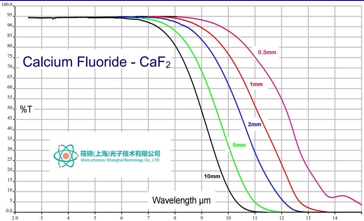 | 透射波长范围: | 0.13 to 10 μm (Note: IR grade will have restricted performance outside IR range) | 0.12 to 7 μm | 0.6 to 21.0 μm |