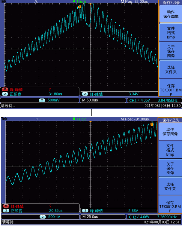 5,打开激光器,打开信号发生器(三角波调制,频率1KHZ,电压幅值500mW)
