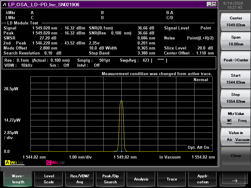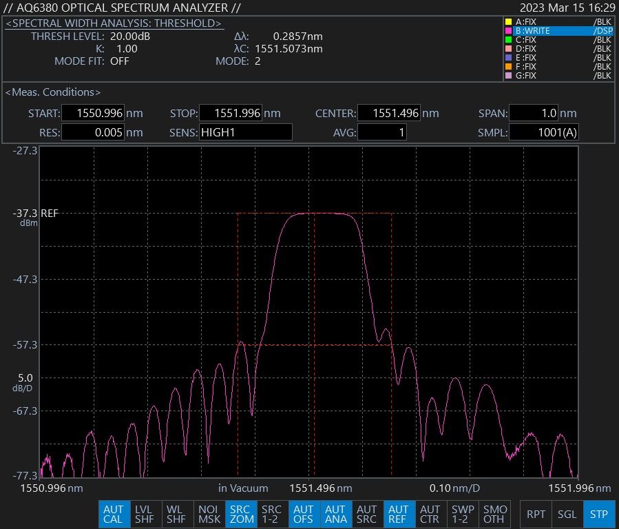 通过调节步进电机的测试光谱如下(1545nm-1555nm):