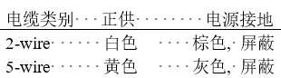 供电电缆有两种,一种是2线,一种是5线。这些电缆对应的配色方案是: