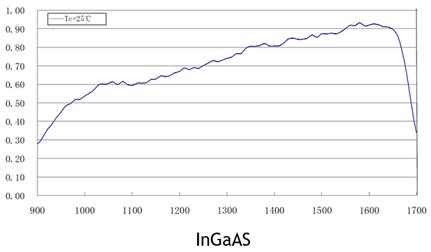 43.6mV/uW @850nm | 1 mV/nW @960nm | 9mV/uW@1550nm | |